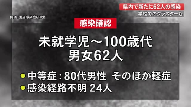 感染が確認されたのは未就学児から100歳代の男女62人です。
