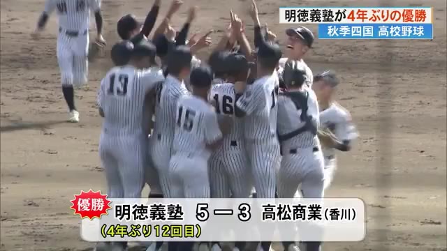 11月4日、秋の高校野球四国大会の決勝戦が行われ、明徳義塾が香川の高松商業を破り優勝しました。