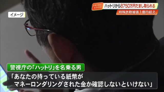 県警によりますと被害にあったのは香南市の70代の男性です。男性は電話で警視庁の「ハットリ」を名乗る男から「あなたの口座がマネーロンダリングに使われている」「在宅で捜査します」と言われ、新しくスマホを契約させられました。